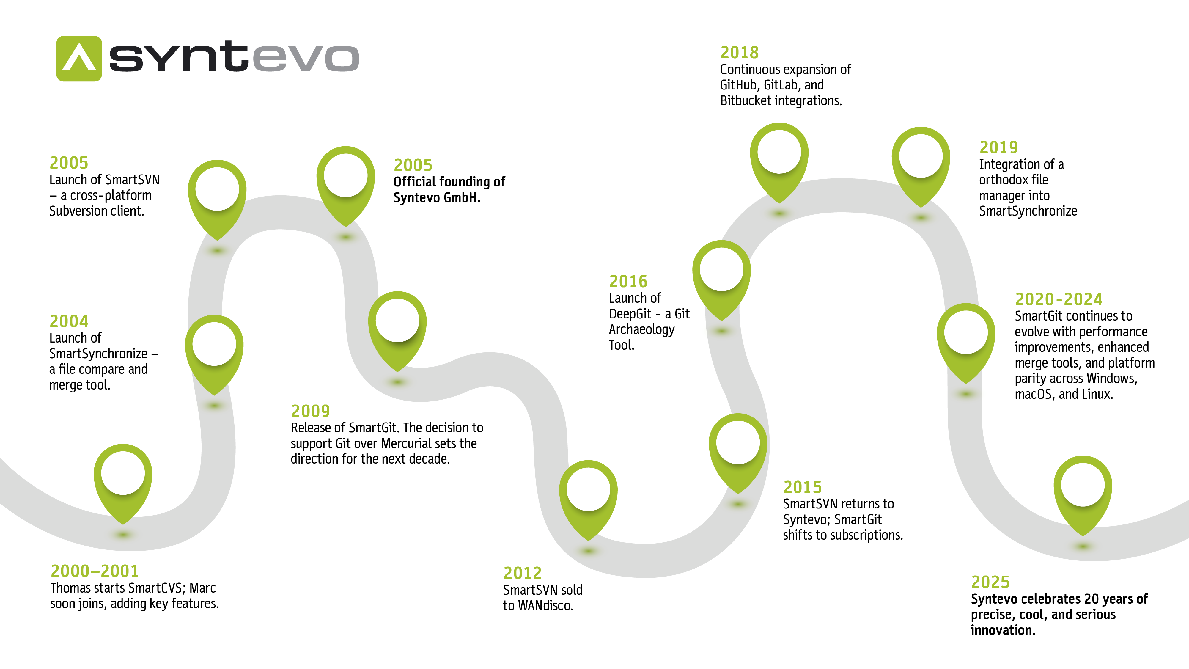 20 years of Syntevo – what a milestone! Since 2001, Marc Strapetz and Thomas Singer have been developing developer tools “made in Germany” used by thousands of developers around the world. In this interview they talk about the early days, key milestones, and what’s next for Syntevo.
